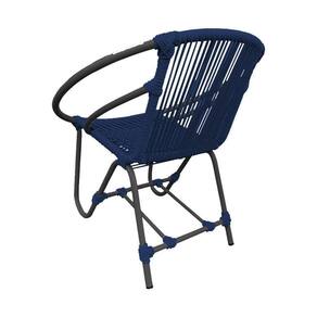 Kit 6 Cadeiras Decorativa Julia Em Corda Náutica E Base Em Alumínio Preta- Azul Marinho - Cor: Azul - Preto