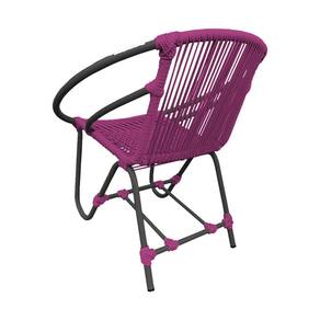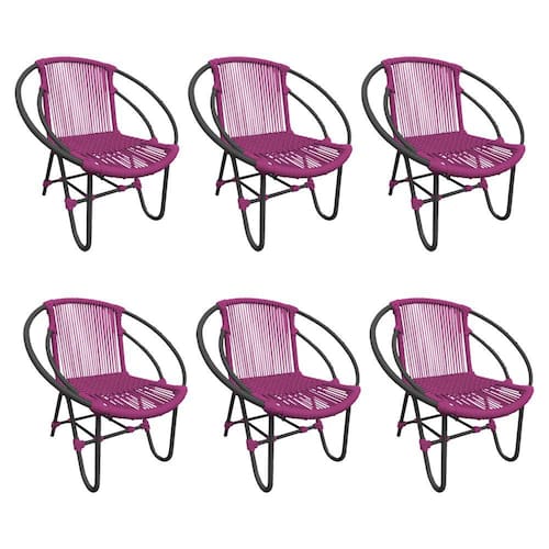 Kit 6 Cadeiras Decorativa Julia em Corda Náutica e Base em Alumínio Preta/ Rosa