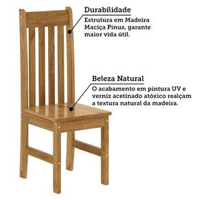 A cadeira Bielefeld é em Madeira Maciça com encosto ripado que une conforto, estilo e durabilidade. Estrutura com travessas reforçadas para maior estabilidade no uso diário. O acabamento em verniz acetinado realça os tons da madeira e protege a peça. Seu visual clássico combina com salas de jantar, cozinhas e ambientes rústicos ou coloniais. Ideal para compor conjuntos com mesas clássicas. Versátil, pode ser usada também em escritórios e varandas gourmet. Acabamento: Verniz Acabamento da Estrutura: Pintura UV Altura do assento até o chão: 45 cm Ambiente Principal: Sala de Jantar codigo_ean: 7900288252616 Complexidade da Montagem: Baixa: pode ser montado por uma pessoa sozinha Cor: Nogueira Cor do Produto: Nogueira Design da Cadeira: Outras Sem Estofamento Dobrável: Não Escala de Brilho: Semi-Brilho Giratória: Não Informações Complementares: Possui cantos arredondados e acabamento com Pintura UV e Verniz Acetinado Atóxico. Encosto com ripado, aumentando a estabilidade e conforto. Itens Inclusos: 6 Cadeiras, Manual de Montagem e Kit de Ferragens. Linha ou Coleção: Bielefeld Manual de Montagem e Instalação: https://product-hub-prd.madeiramadeira.com.br/195958074/documents/0831a75d-6282-4bf8-88e8-a9fb23e826b73263728634117598472740326.pdf Marca: Espresso Móveis Material Principal: Madeira Maciça Necessita Montagem: Sim Origem do Produto: Nacional Peso: 36,9 kg Possui Apoio para Braços: Não Possui Apoio Para os Pés: Não Possui Assento/Encosto Estofados: Não Possui Espaldar: Sim Quantidade de Itens: 6 Recomendações de Uso, Manutenção e Limpeza: Limpar com flanela ou pano macio seco, não utilizar produtos abrasivos, desengordurantes, álcool ou solvente. Sistema de Montagem: Parafuso, cavilha e cola. Tipo de Assento: Fixo Tipo de Encosto: Fixo Tipo de Madeira Maciça: Pinus