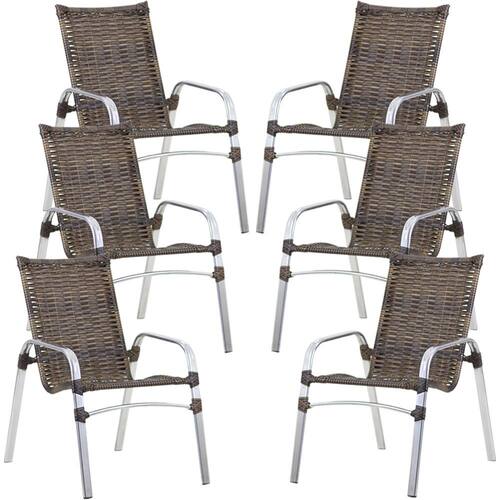 Kit 6 Cadeiras Emily em Alumínio e Fibra Sintética Trama - Palha
