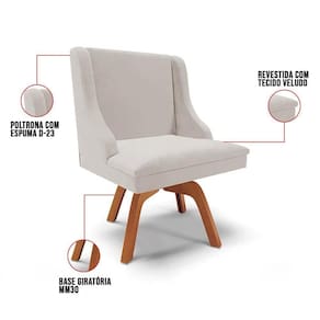 A Cadeira Estofada Lia possui design elegante e é ideal para quem busca aconchego e sofisticação na hora das refeições. A Base Giratória de Madeira é resistente e permite que se movimente com facilidade e ainda suporta até 120kg! Além disso, a Cadeira Estofada é produzida com Madeira Eucalipto de reflorestamento, ecologicamente correta e o estofado é composto em espuma macia D-23 e revestido em Veludo, tecido clássico, elegante, macio, agradável ao toque, além de resistente e durável é versátil e combina com vários estilos de decoração!