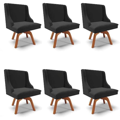 Altura: 85 cm | AssemblyRequired: Sim, sugerimos a contratação do nosso serviço de montagem (para os CEPs em que o serviço está dispon | Color: Preto | ColorFamily: Preto | ColorSimple: Preto | ColorSupplier: Preto | Cor: Preto | Gênero: Unissex | Largura: 55 cm | Manual: Sim | Material: Madeira de Eucalipto | MaterialFamily: Madeira | Model: Lia | Origem: | OriginCountry: | OriginState: PR | Peso: 102 kg | ProductContents: 6 Cadeiras | ProductHeight: 85 | ProductInstructions: Produto para uso em ambiente interno, nao devendo ficar exposto ao sol, calor e umidade excessivos. | ProductLength: 55 | ProductWarranty: 90 dias após o do produto | ProductWeight: 102 | ProductWidth: 55 | Profundidade: 55 cm | Requere montagem: Sim | SizeDescription: 85 x 55 x 55 cm | SupplierSimpleName: Kit 6 Cadeiras Estofadas Base Giratória de Madeira Lia Veludo Preto - Ibiza