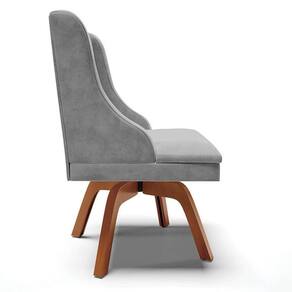 A Cadeira Estofada Lia possui design sofisticado e é ideal para quem busca aconchego e sofisticação na hora das refeições. A Base Giratória de Madeira é resistente e permite que se movimente com facilidade e ainda suporta até 120kg! Além disso, a Cadeira Estofada é produzida com Madeira Eucalipto de reflorestamento ecologicamente correta e o estofado é composto em espuma macia D-23 e revestido em tecido Suede, altamente resistente, agradável ao toque, confortável e versátil, ou seja, combina com vários estilos de decoração!