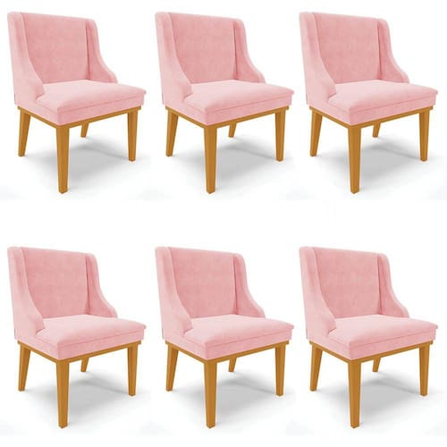 Quando se trata da Sala de Jantar, logo, pensamos na harmonia e no conforto do ambiente, por isso, o Kit 6 Cadeiras Estofadas para Sala de Jantar Base Fixa de Madeira Castanho Lia Suede Rosa bebê, da Ibiza, é perfeito para a sua casa!