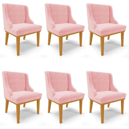 Quando se trata da Sala de Jantar, logo, pensamos na harmonia e no conforto do ambiente, por isso, o Kit 6 Cadeiras Estofadas para Sala de Jantar Base Fixa de Madeira Castanho Lia Suede Rosa bebê, da Ibiza, é perfeito para a sua casa!