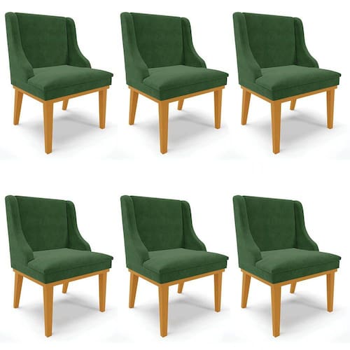 Quando se trata da Sala de Jantar, logo, pensamos na harmonia e no conforto do ambiente, por isso, o Kit 6 Cadeiras Estofadas para Sala de Jantar Base Fixa de Madeira Castanho Lia Suede Verde, da Ibiza, é perfeito para a sua casa!