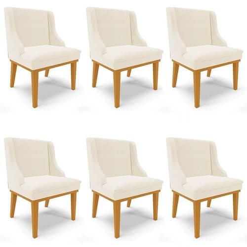 Reunir pessoas queridas e compartilhar refeições é um dos melhores momentos que temos no nosso dia, melhor ainda se for ao redor de uma bela mesa e de cadeiras confortáveis, pensando nisso a Ibiza apresenta o Kit 6 Cadeiras Estofadas para Sala de Jantar Base Fixa de Madeira Castanho Lia Veludo Bege.