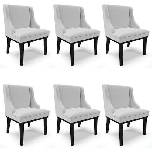 O Kit 6 Cadeiras Estofadas para Sala de Jantar Base Fixa de Madeira Preto Lia Linho Cinza é o que você estava procurando, e eu posso provar, vem conhecer os detalhes!