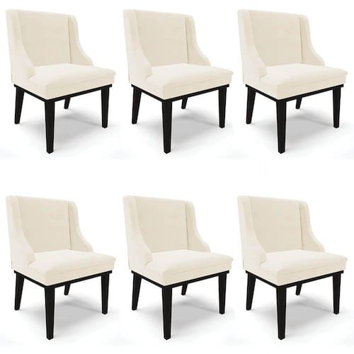 Para quem deseja unir conforto e sofisticação o Kit 6 Cadeiras Estofadas para Sala de Jantar Base Fixa de Madeira Preto Lia Veludo Bege, da Ibiza é perfeito, vem conhecer!