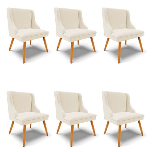 O Kit 6 Cadeiras Estofadas para Sala de Jantar Pés Palito Lia Linho Bege, da Ibiza, é sinônimo de estilo, qualidade e aconchego, confira os detalhes!