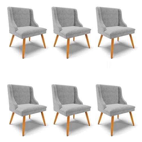 O Kit 6 Cadeiras Estofadas para Sala de Jantar Pés Palito Lia Suede Cinza, da Ibiza é a junção de beleza, leveza e charme, confira os detalhes!
