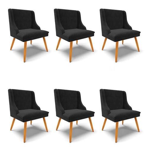 O Kit 6 Cadeiras Estofadas para Sala de Jantar Pés Palito Lia Suede Preto, da Ibiza é a junção de beleza, leveza e charme, confira os detalhes!