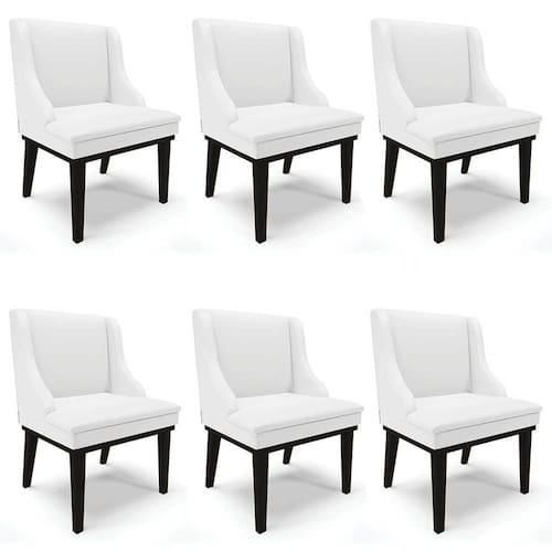 Deixe sua Sala de Jantar com o requinte e sofisticação que ela merece! Conheça o Kit 6 Cadeiras Estofadas Sala de Jantar Base Fixa de Madeira Preto Lia Sintético Branco, da Ibiza e surpreenda-se!