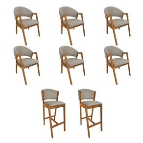 Kit 6 Cadeiras Helen Madeira Maciça com 2 Banquetas Ana Cerejeira para Sala - Bege