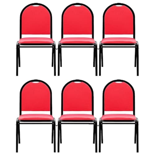 Pensando em durabilidade, beleza e versatilidade, a Mpozenato apresenta o Kit 6 Cadeiras Hoteleiras Auditório Empilhável Sintético M23 Vermelho, confira os detalhes!