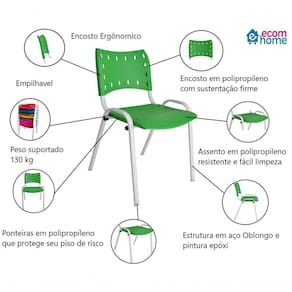 Kit 6 Cadeiras Iso Para Escola Escritório Comércio Verde Base Branca