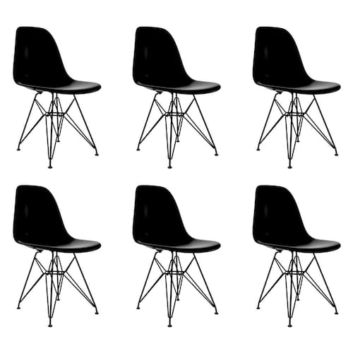 Kit 6 Cadeiras Jantar Assento Preto Eiffel Eames Base Ferro Preto