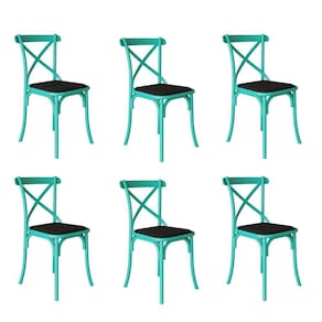 Kit 6 Cadeiras Katrina Assento Corano Preto Aço Azul Turquesa