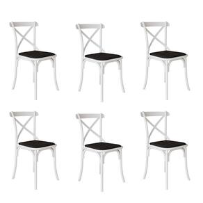 AS IMAGENS SÃO MERAMENTE ILUSTRATIVAS E PODEM SOFRER VARIAÇÕES DE COR E PEQUENOS DETALHES DE ACORDO COM O SEU MONITOR, ILUMINAÇÃO DO AMBIENTE E ATÉ MESMO A SUA PERCEPÇÃO VISUAL.Kit 6 Cadeiras Katrina Assento Corano Preto AÃo Branco