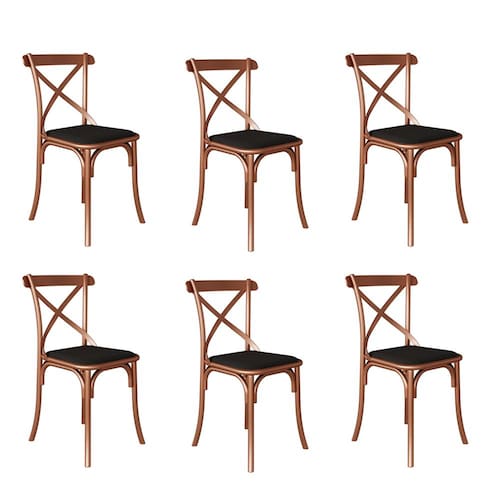 Kit 6 Cadeiras Katrina Assento Corano Preto Aço Cobre - Laranja