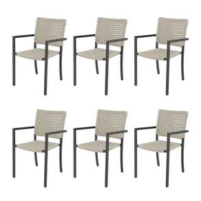 Kit 6 Cadeiras Marília Corda Náutica Base Em Alumínio Preto/areia - Cor: Bege