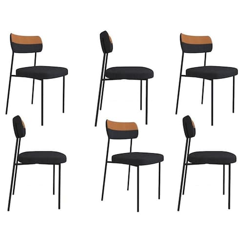 Kit 6 Cadeiras Mila Laminado Caramelo/Linho Grafite - FdECOR