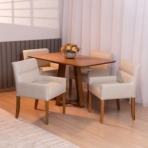 Características Técnicas Estrutura: Madeira reflorestada de eucalipto com reforço em MDF e OSB Assento: Espuma D-28 HR sobre base de madeira conforto e firmeza Encosto e Braça: Espuma D-23 sobre percintas elásticas de nylon ergonomia e apoio na medida Revestimento: Corano visual sofisticado e fácil de manter Pés: Madeira maciça envernizada, modelo fixo Altura dos braços com mesas de jantar padrão praticidade no uso diário Medidas Altura Total: 83 cm Largura: 56 cm Profundidade: 56 cm Peso: 15 kg Altura do Assento ao Chão: 49 cm Largura do Assento: 45 cm Profundidade do Assento: 47 cm Altura dos Pés: 35 cm Altura do Encosto: 36 cm Altura do Braço ao Assento: 11 cm Diferenciais Encosto de braço mais baixo: encaixa perfeitamente sob a mesa Design simples, versátil e elegante Materiais de alta qualidade para maior durabilidade Já vem montada é só desembalar e usar Suporta até 110 kg Cuidados Limpeza com pano levemente umedecido, seguido de pano seco Evitar exposição solar direta por muitas horas Não usar produtos abrasivos, evitar produtos com corantes ou escovas rígidas Garantia3 meses contra de fabricaçãoObservações Imagens ilustrativas; tonalidade pode variar devido à configuração de cores da tela. Objetos de decoração não inclusos. Produtos enviados embalados com , reduzindo riscos de danos. Verificar as condições da embalagem na e reportar danos no . até a porta de entrada ou portaria. Confirme as dimensões e compatibilidade do de instalação. Não nos responsabilizamos por montagem, desmontagem, instalação ou por escadas/elevadores.