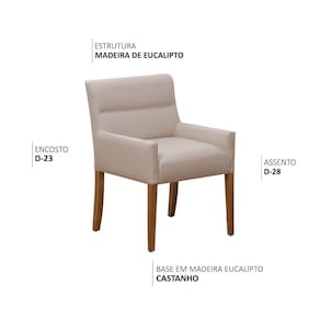 Projetada especialmente para salas de jantar, seu apoio baixo para os braços permite encaixe perfeito sob a mesa, garantindo mais mobilidade e aproveitamento de espaço. Além do conforto, o grande destaque está na sua construção robusta: madeira reflorestada de eucalipto, espumas de alta densidade e acabamento impecável