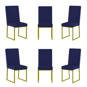 Você receberá 3 volumes, ou seja, seis Cadeiras Estofadas para Mesa de Jantar com Base Industrial Dourado.