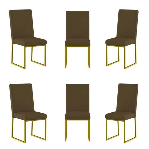 Você receberá 3 volumes, ou seja, seis Cadeiras Estofadas para Mesa de Jantar com Base Industrial Dourado.