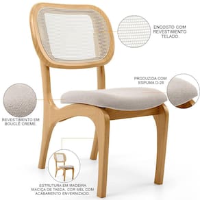 Com design orgânico expresso nas linhas curvas, essa cadeira estofada, além de cumprir perfeitamente com sua funcionalidade, ao garantir conforto e bem-estar durante as refeições, vai também agregar charme e sofisticação à decoração seja da sua sala de jantar, da cozinha e até mesmo da sua área gourmet, já que detalhes como estrutura de Taeda maciça e encosto com tela harmonizam perfeitamente entre si, criando uma cadeira de madeira incrivelmente linda.