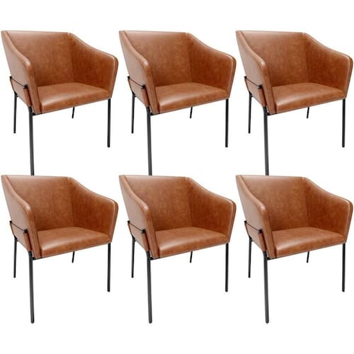 Que tal inovar na sala de jantar e apostar em um modelo de cadeira de jantar estilo poltrona?! Isso mesmo, com o Kit 06 Cadeiras Para Sala de Jantar Estar Living Olívia L02 Couríssimo Camel, da Lyam Decor, você pode.