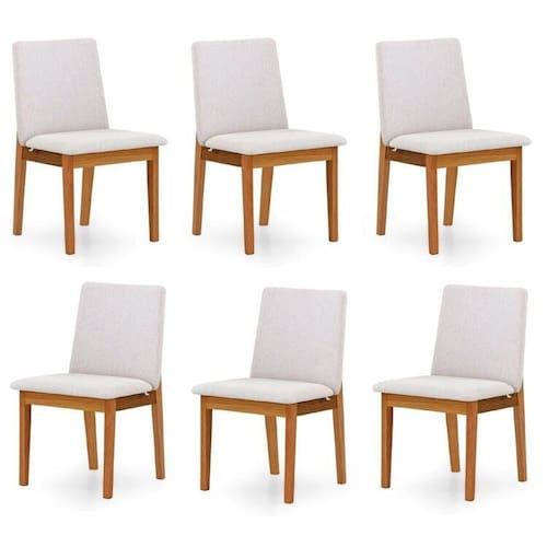 ideal para todos os estilos de salas de jantar. Altura do Conjunto: 87 cm Ambiente: null Ambiente Principal: Sala de Jantar codigo_ean: 7900288268112 Cor: Bege Claro Cor do Produto: Bege Claro Informação Complementar: 6x Cadeira para Sala de Jantar Estofada Madeira Maciça Cecília Bege Claro/ Jequitiba Largura: 50 cm Altura: 87 cm Peso: 7 kg Profundidade: 56 cm Necessita Montagem: Sim