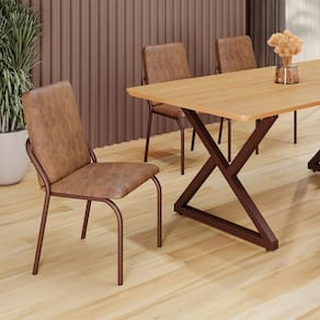 Moderna e elegante, esta cadeira apresenta assento e encosto estofados em tecido marrom, que proporcionam conforto e sofisticação ao ambiente. A estrutura em aço com pintura marrom confere robustez, estabilidade e um toque contemporâneo, tornando-a ideal para salas de jantar com estilo industrial ou minimalista. Uma peça versátil e atemporal, que combina facilmente com diferentes tipos de mesas e decorações. Ambiente Principal: Sala de Jantar codigo_ean: 7900288237705 Complexidade da Montagem: Baixa: pode ser montado por uma pessoa sozinha Cor: Marrom Cor do Produto: Marrom Escala de Brilho: Semi-Fosco Itens Inclusos: 6 Cadeiras e Ferragem Linha ou Coleção: Malibu Manual de Montagem e Instalação: https://cdn2.madeiramadeira.com.br/atributo/moveis-teixeira/3179907-4938-17569092231836.pdf Marca: Móveis Teixeira Material Principal: Aço Necessita Montagem: Sim Origem do Produto: Nacional Peso: 6,16 kg Recomendações de Uso, Manutenção e Limpeza: Usar um pano de tecido macio e seco, evitar detergentes, alvejantes e produtos químicos de limpeza; no tampo usar tecido macio levemente umedecido. Sistema de Montagem: Parafusos Marca: Não Informado