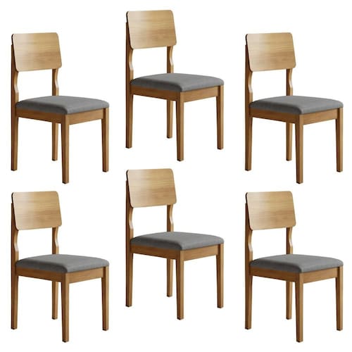 Kit 6 Cadeiras para Sala de Jantar Pés Madeira Maciça Ana Cinamomo/Cinza