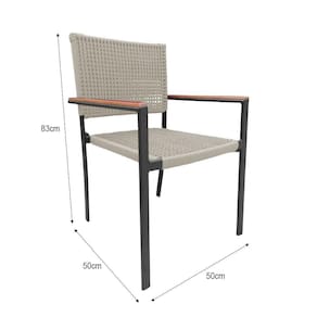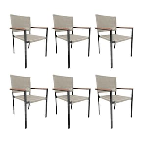 AS IMAGENS SÃO MERAMENTE ILUSTRATIVAS E PODEM SOFRER VARIAÇÕES DE COR E PEQUENOS DETALHES DE ACORDO COM O SEU MONITOR, ILUMINAÇÃO DO AMBIENTE E ATÉ MESMO A SUA PERCEPÇÃO VISUAL.Kit 6 Cadeiras Piracicaba Corda NÃutica BraÃo com Detalhe em Madeira Base AlumÃnio Preto/areia