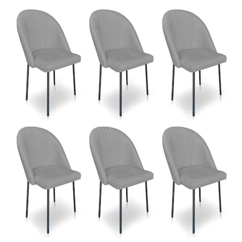 Kit 6 Cadeiras Poltrona De Jantar Ariel Suede Grafite Pés De Ferro Preto - Pallazio