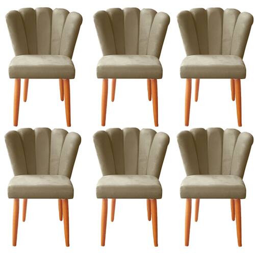 Kit 6 Cadeiras Poltrona Sala de Jantar Penteadeira Reforçada Decorativa Pétala Suede - Marrom Cacau