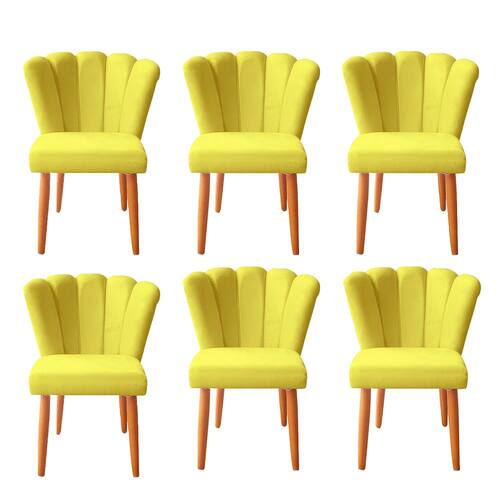 Kit 6 Cadeiras Poltrona Sala de Jantar Penteadeira Reforçada Decorativa Pétala Suede - Amarelo