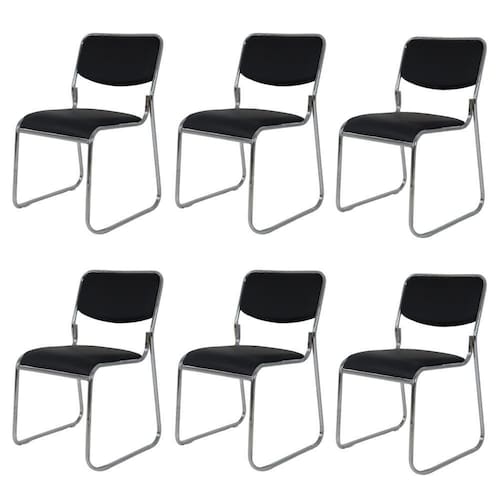 Conjunto Kit 6 Cadeiras De Escritório Recepção Auditório Interlocutor Base Fixa Dakkar Dubai Preto
