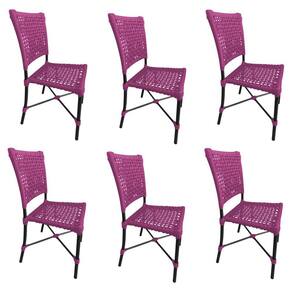 Kit 6 Cadeiras Roma Corda Náutica Base em Alumínio Preto/rosa