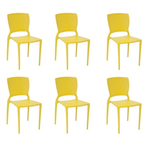 A Cadeira Safira Amarela Tramontina é excelente! Por conta de seu encosto perfurado, a Cadeira Safira Amarela Tramontina é uma cadeira que se destaca perante os demais modelos. É uma cadeira que combina em todos ambientes, tanto em salas de jantar, cozinhas, quiosques, padarias, bares, restaurantes, dentre todos os outros segmentos do mercado. E é claro combina perfeitamente com a sua casa.