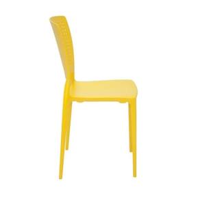 A Cadeira Safira Amarela Tramontina é feita de polipropileno e fibra de vidro.