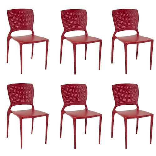 CADEIRA SAFIRA VERMELHA TRAMONTINA É BOA?A Cadeira Safira Vermelha Tramontina é excelente! Por conta de seu encosto perfurado, a Cadeira Safira Vermelha Tramontina é uma cadeira que se destaca perante os demais modelos. É uma cadeira que combina em todos ambientes, tanto em salas de jantar, cozinhas, quiosques, padarias, bares, restaurantes, dentre todos os outros segmentos do mercado. E é claro combina perfeitamente com a sua casa.