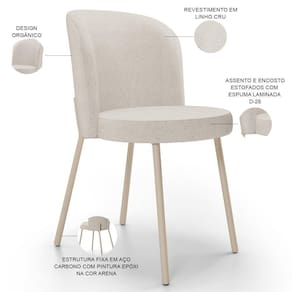 Altura da cadeira: 80 cm | Altura do assento a partir do solo: 46 cm | Color: Cru | ColorFamily: Cru | ColorSimple: Branco | ColorSupplier: Cru | Cor: CRU | Cor da estrutura da cadeira: Arena | Cor do assento: Cru | Cor do estofamento: Cru | Desenho do tecido: Liso | É cadeira de balanço: Não | É dobrável: Não | É empilhável: Não | Espessura do assento: na | Fabricante: Lyam Decor | Firmeza: Firmeza | Largura da cadeira: 44 cm | Largura do assento: 42 cm | Material: Estrutura em Aço carbono, Revestimento em Linho e espuma | Material do estofamento: Linho e espuma | MaterialFamily: Aço carbono, Linho e espuma | Model: Gavi | OriginCountry: Nacional | OriginState: PR | Peso máximo suportado: 120 kg | ProductContents: 06 Cadeiras | ProductHeight: 81 cm | ProductInstructions: Produto para uso em ambiente interno, nao devendo ficar exposto ao sol, calor e umidade excessivos. | ProductLength: 108 cm | ProductWarranty: 90 dias após o recebimento do produto | ProductWeight: 30 kg | ProductWidth: 135 cm | Profundidade da cadeira: 53 cm | Profundidade do assento: 42 cm | Requer montagem: Não | SizeDescription: Altura: 81 cm x Largura: 135 cm x Profundidade: 108 cm | SupplierSimpleName: Kit 6 Cadeiras Sala de Jantar Estofada Gavi Arena L02 Linho Cru - Lyam Decor | Tempo de montagem: na