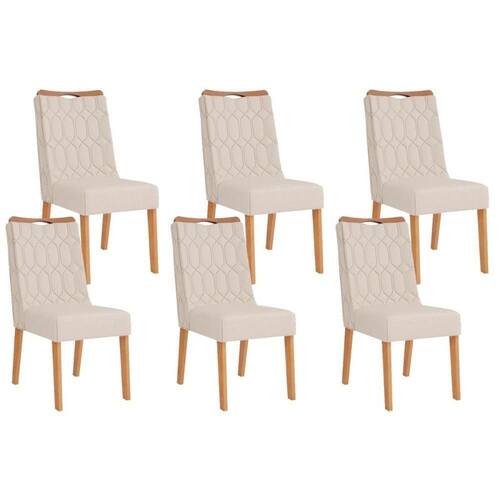 Kit 6 Cadeiras Sala Jantar Bia 6 Un Cedro/linho Neve - Dj Móveis