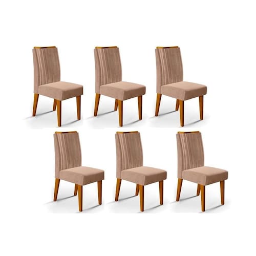 Abaixo segue os produtos do KIT: Cadeira Sala de Jantar Isis Kit 6 Un Ipê/Suede Kraft - DJ Móveis