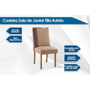 Cadeira Sala de Jantar Tília Kit 2 Un Madeira Capuccino/Linho Capuccino/Corano Capuccino - Rufato