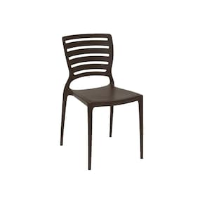 A Cadeira Sofia Marrom Tramontina é feita de polipropileno e fibra de vidro.