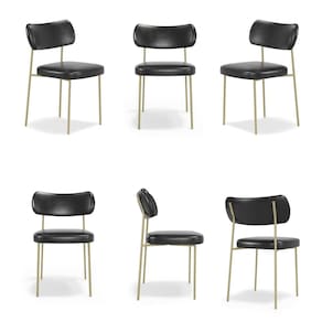 Kit 6 Cadeiras Stela Champanhe Escritório Couro Sintetíco Preto - Vallisa Decor